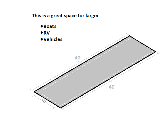 This uncovered space is great for larger boats, RV's, and vehicles.